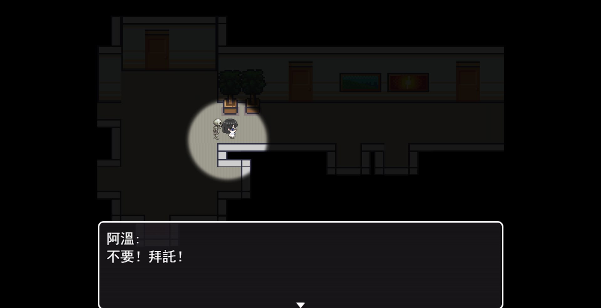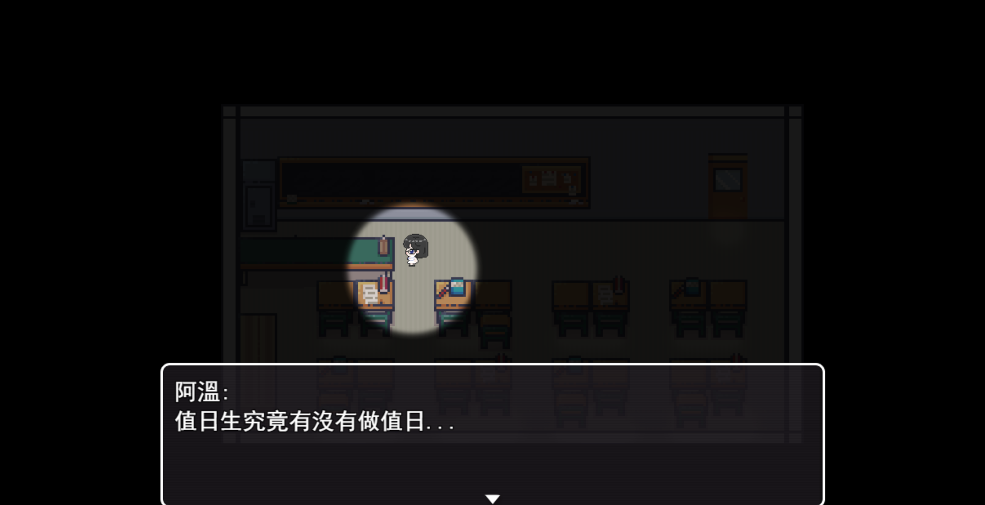 這是個在學校裡解謎的校園RPG遊戲。你扮演勞校中學的學生阿溫,醒來發現校園變樣了,整個校園被封鎖異變,到處是鬼怪。你必須在熟悉的勞校新翼三樓教室中翻箱倒櫃尋找線索,解開各種與校史相關的小謎題(比如解開數學算式、探索密碼、完成拼圖等等)來拿到鑰匙,才能打開新區域。你需要利用紙條上的生存法則,躲避巡邏的骷髏守衛。你打不過它們,只能靠紙條上的提示跟怪物玩躲貓貓,一路慫到底,直到找出背後的秘密。